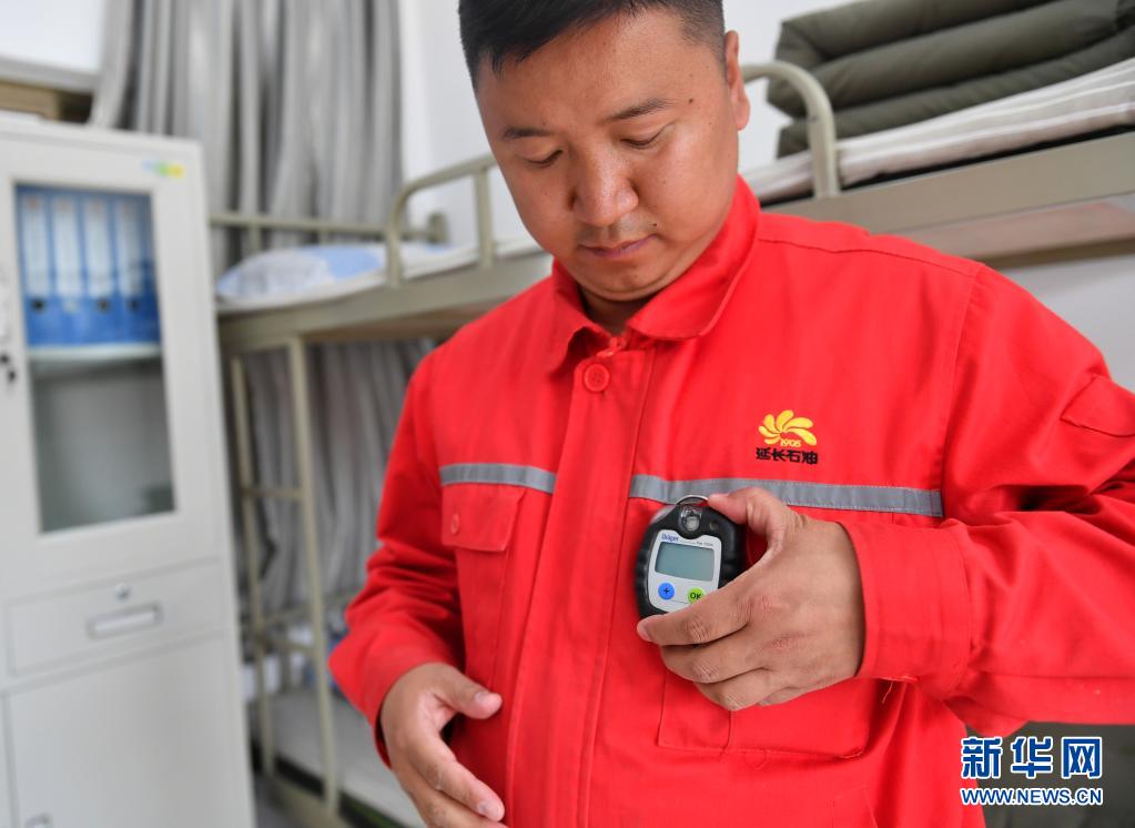 4月28日,巡線(xiàn)隊(duì)員侯勵(lì)峰出發(fā)前佩戴氣體檢測(cè)報(bào)警儀。新華社記者 張博文 攝
