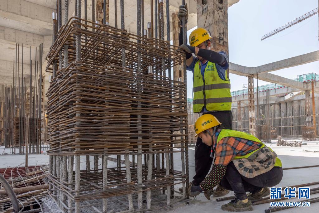 5月1日,中鐵建工集團(tuán)上海九星城項目的工人在工地施工。
