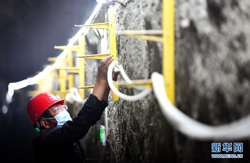 5月1日,在陜西西安地鐵八號線豐禾路站1號豎井施工現(xiàn)場,中鐵七局的工作人員在作業(yè)。