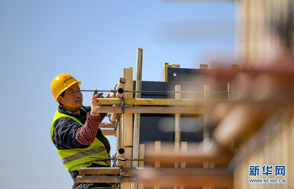 5月1日,寧夏銀川市經(jīng)濟技術開發(fā)區(qū)中環(huán)50GW(G12)太陽能級單晶硅材料智慧工廠項目的工人在現(xiàn)場作業(yè)。