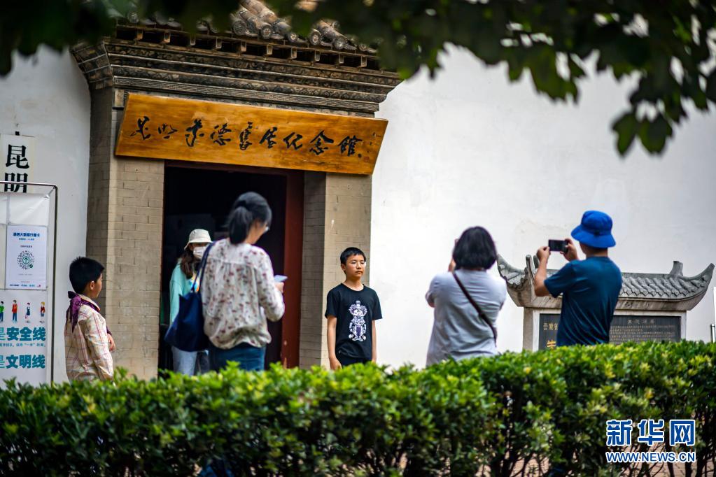 5月1日,游客在昆明朱德舊居紀(jì)念館拍照留念。