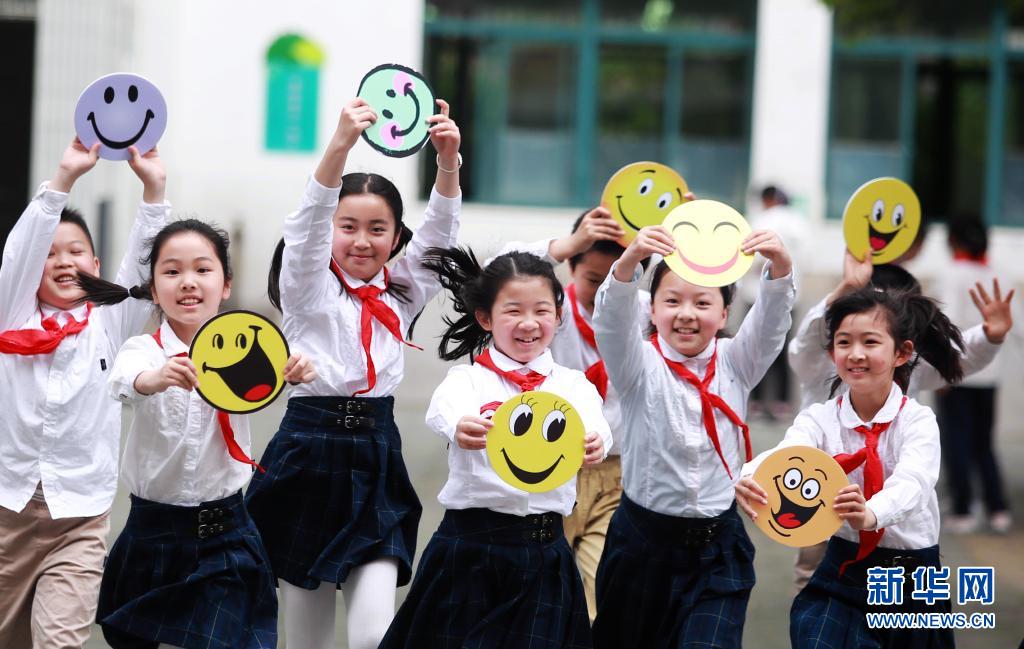 5月7日,江蘇省揚州市汶河小學(xué)的學(xué)生們在“笑迎世界微笑日”活動中手舉笑臉卡做游戲。世界精神衛(wèi)生組織將每年的5月8日定為“世界微笑日”,希望通過微笑促進人類身心健康,增進社會和諧。新華社發(fā)(孟德龍 攝)