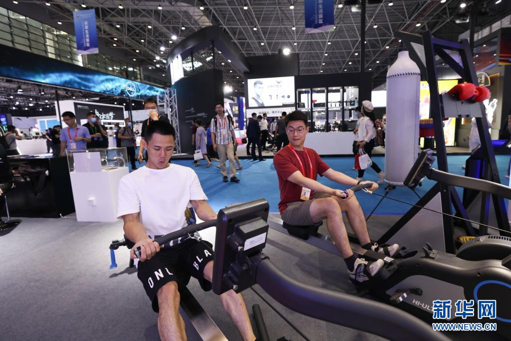 首屆中國國際消費品博覽會在海南省??谑信e行,其中包括旅居生活和服務(wù)消費等展區(qū)。參展商帶來的運動器械等產(chǎn)品吸引了諸多觀眾現(xiàn)場體驗、咨詢。