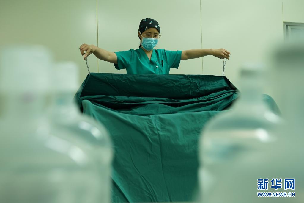 5月11日,河北省邢臺(tái)市巨鹿縣醫(yī)院手術(shù)室護(hù)士在做術(shù)前準(zhǔn)備。