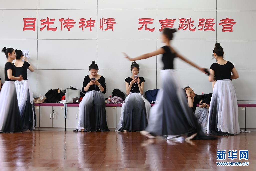 天津理工大學(xué)聾人工學(xué)院的舞蹈隊(duì)員們?cè)趯W(xué)院的排練廳里休息(5月8日攝)。新華社記者 李然 攝