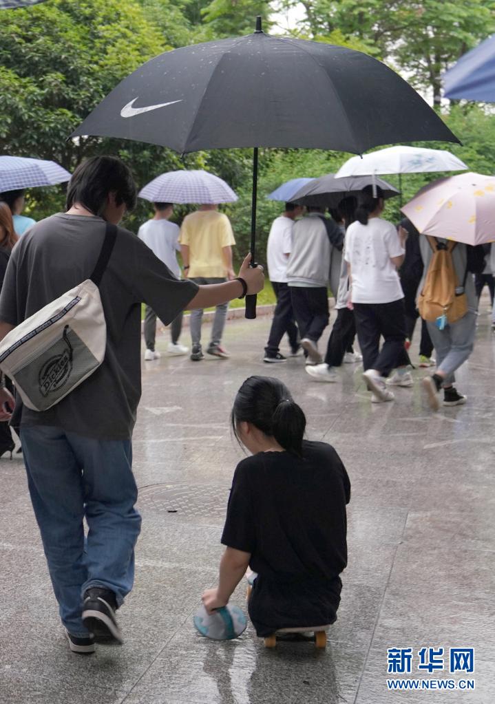 2021年5月10日,蔣張子怡在雨天行動不便,同學(xué)撐傘替她擋雨。