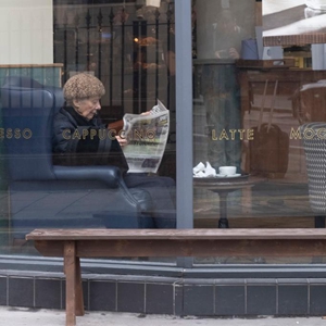 5月17日,一名顧客在英國倫敦一家咖啡館看報。