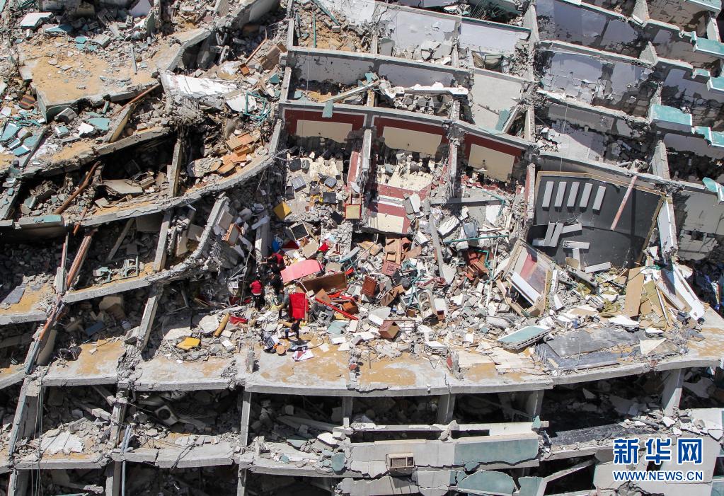 這是5月23日在加沙城拍攝的遭以軍空襲損毀的賈拉塔。5月10日以來,以色列與加沙地帶武裝組織之間爆發(fā)嚴(yán)重沖突。20日晚,哈馬斯與以色列方面各自宣布,雙方已達(dá)成?;饏f(xié)議,?;饛?1日凌晨開始。新華社發(fā)(里澤克·阿卜杜勒·賈瓦德攝)