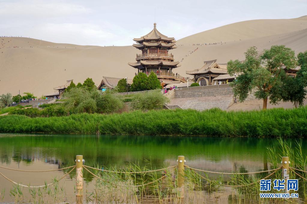 時(shí)下,位于甘肅省敦煌市的月牙泉碧波蕩漾,吸引不少游客前來觀光。