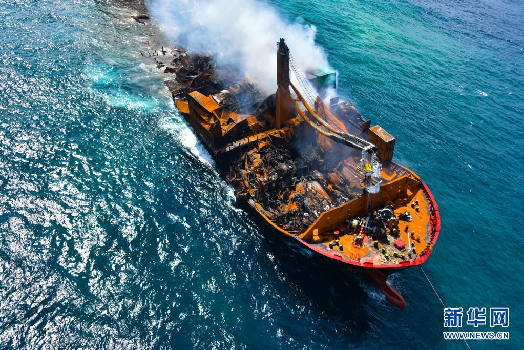 6月2日,斯里蘭卡總統(tǒng)戈塔巴雅下令將起火貨船“X-PRESS PEARL”號拖向遠離科倫坡港的深海區(qū),以防引發(fā)更大的環(huán)境災(zāi)難?!癤-PRESS PEARL”號貨船5月20日抵達科倫坡港西北約9.5海里錨地時發(fā)出火警求救信號。斯里蘭卡海洋環(huán)境保護局官員5月28日表示,在科倫坡港附近起火燃燒的“X-PRESS PEARL”號貨船預(yù)計將會引發(fā)嚴重環(huán)境災(zāi)難。新華社發(fā)(斯里蘭卡空軍媒體處供圖)
