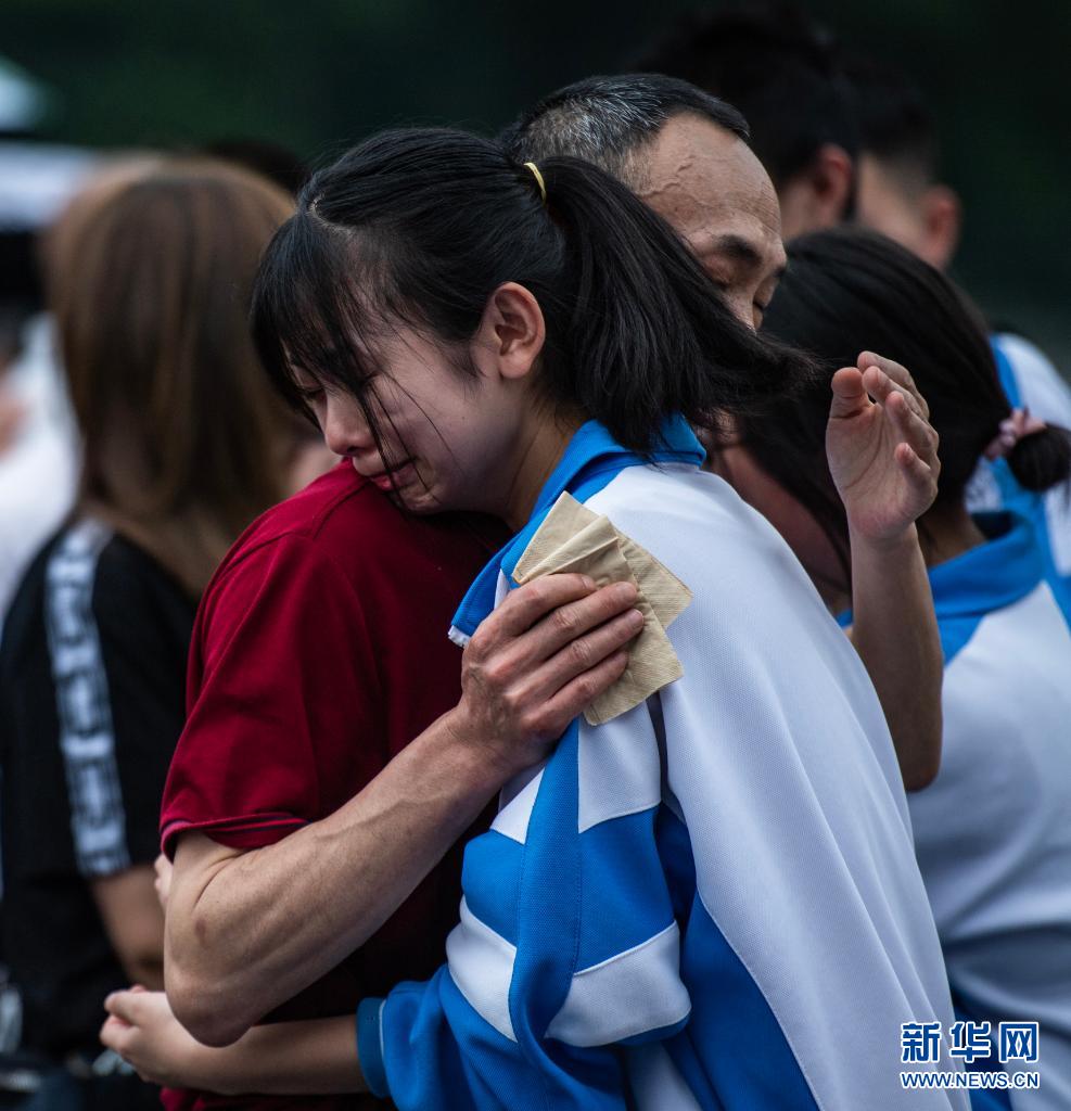 6月9日,烏當(dāng)中學(xué)高三學(xué)生和家長在成人儀式上擁抱。