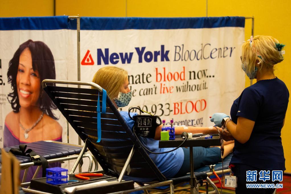 6月14日,在美國紐約州長島地區(qū)的尤寧代爾,獻(xiàn)血志愿者在美國紐約血液中心舉行的獻(xiàn)血活動(dòng)上獻(xiàn)血。