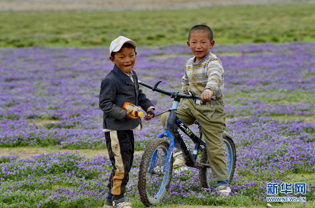 西藏當雄縣格達鄉(xiāng)格達村的兒童在草場玩耍(6月19日攝)。