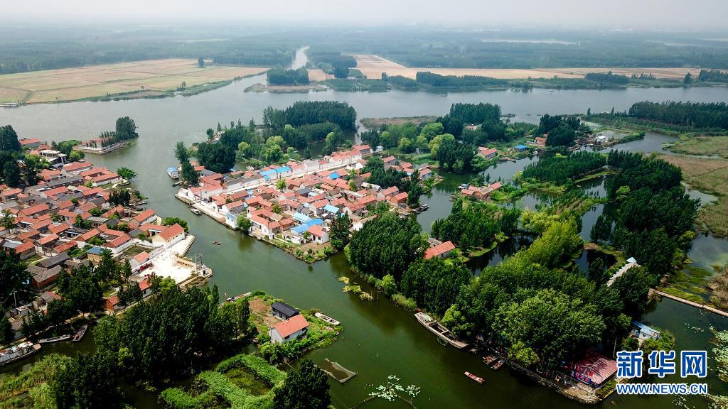 這是郵遞員王少朋服務(wù)的微山縣南陽鎮(zhèn)柳溝村和龔莊村(6月20日攝,無人機(jī)照片)。