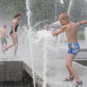 6月22日,人們?cè)诙砹_斯圣彼得堡300周年公園消暑。