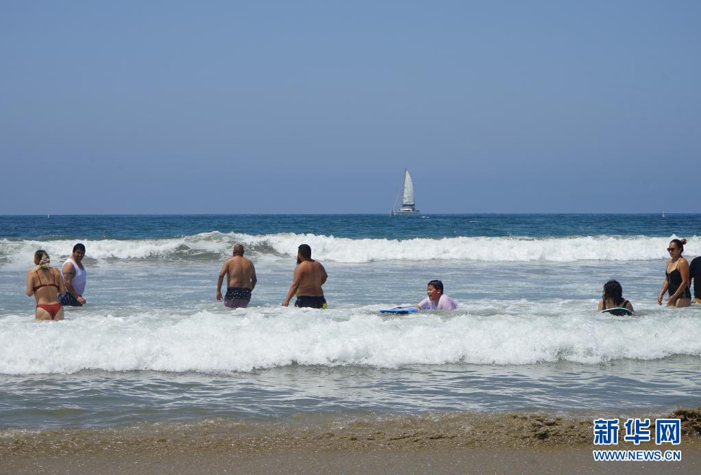 7月11日,人們在美國加利福尼亞州圣莫尼卡海灘消暑。