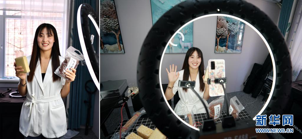 拼版照片:左圖為何雪艷在山西省平順縣龍鎮(zhèn)村電商服務(wù)中心直播間里;右圖為何雪艷通過網(wǎng)絡(luò)直播介紹農(nóng)產(chǎn)品(7月8日攝)。今年25歲的何雪艷是龍鎮(zhèn)村電商服務(wù)中心的網(wǎng)絡(luò)主播,從一個(gè)“電商小白”變身網(wǎng)絡(luò)主播不到一年時(shí)間,何雪艷已成為龍鎮(zhèn)村帶貨能力頗強(qiáng)的“網(wǎng)紅”。從最初直播時(shí)結(jié)結(jié)巴巴,到如今精準(zhǔn)掌握網(wǎng)絡(luò)語言,何雪艷和村里其他主播變得越來越熟練。
