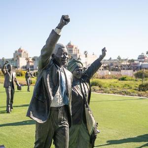 這是7月18日在南非開普敦拍攝的南非前總統(tǒng)納爾遜·曼德拉和其夫人溫妮·馬迪基澤拉-曼德拉的銅像。