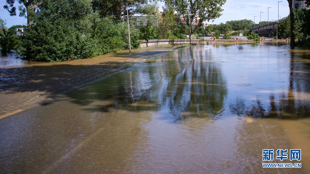 這是7月17日拍攝的荷蘭林堡省魯爾蒙德鎮(zhèn)被洪水淹沒(méi)的路面。