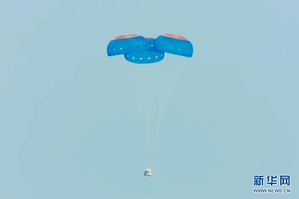這張美國藍色起源公司7月20日發(fā)布的視頻截圖顯示“新謝潑德”飛行器在美國得克薩斯州西部降落。