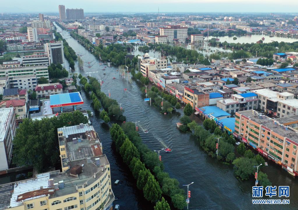 近日,河南省新鄉(xiāng)市衛(wèi)輝市遭遇強降水天氣,衛(wèi)輝市城區(qū)被洪水淹沒。目前,救援工作仍在進(jìn)行中。新華社記者 李嘉南 攝