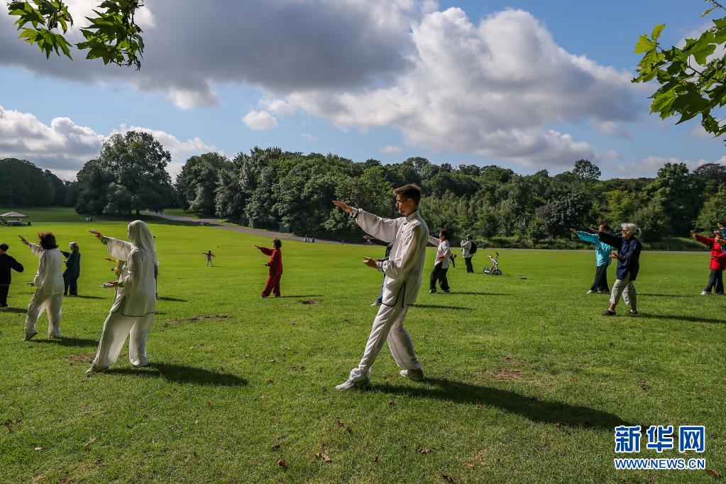 7月28日,人們在比利時布魯塞爾的拉肯公園練習(xí)太極。
