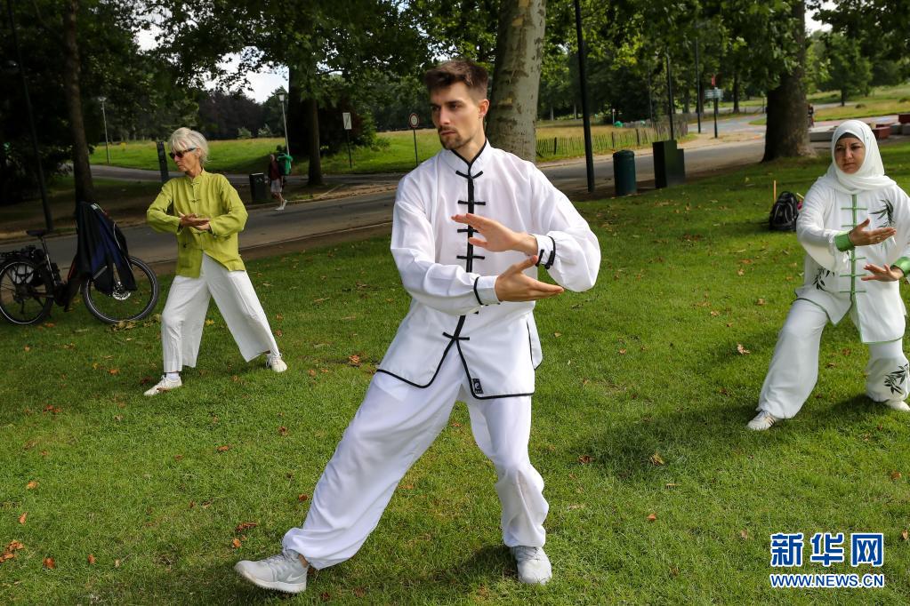7月28日,人們?cè)诒壤麜r(shí)布魯塞爾的拉肯公園練習(xí)太極。