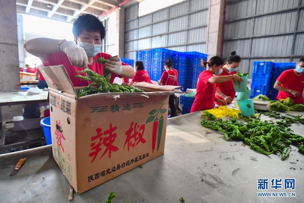 8月1日,在位于長(zhǎng)沙市望城區(qū)的湖南高星物流園,蔬菜倉(cāng)庫(kù)的工作人員分揀辣椒。