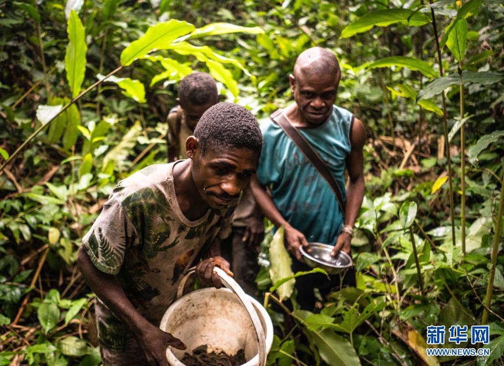 7月18日清晨,中非共和國洛巴耶省當?shù)氐馁赂衩兹嗽谏掷镎蚁x子。