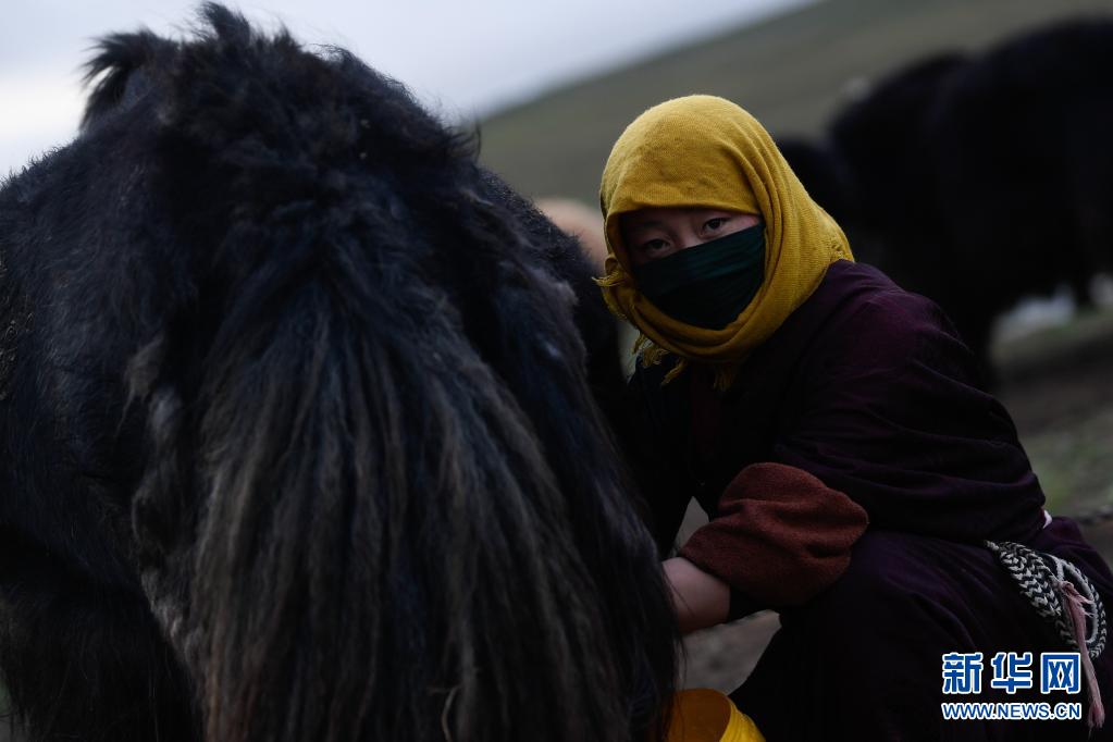 8月3日,在瑪沁縣當(dāng)洛鄉(xiāng)貢龍村的夏季草場上,牧民在擠奶。