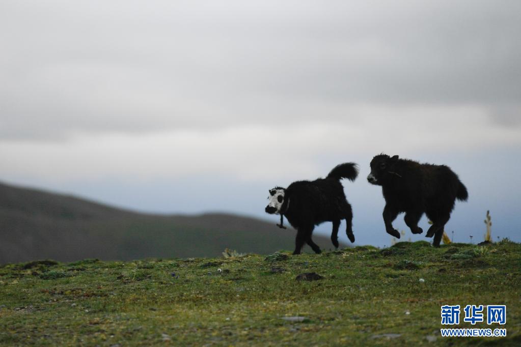 這是8月3日在瑪沁縣當(dāng)洛鄉(xiāng)貢龍村的夏季草場(chǎng)上拍攝的牦牛犢。