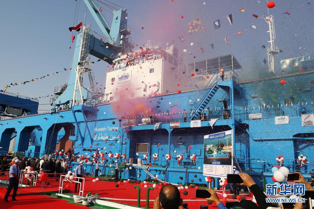 當(dāng)日,埃及蘇伊士運(yùn)河管理局在伊斯梅利亞舉行儀式,迎接最新購入的“侯賽因·坦塔維”號大型絞吸式挖泥船。