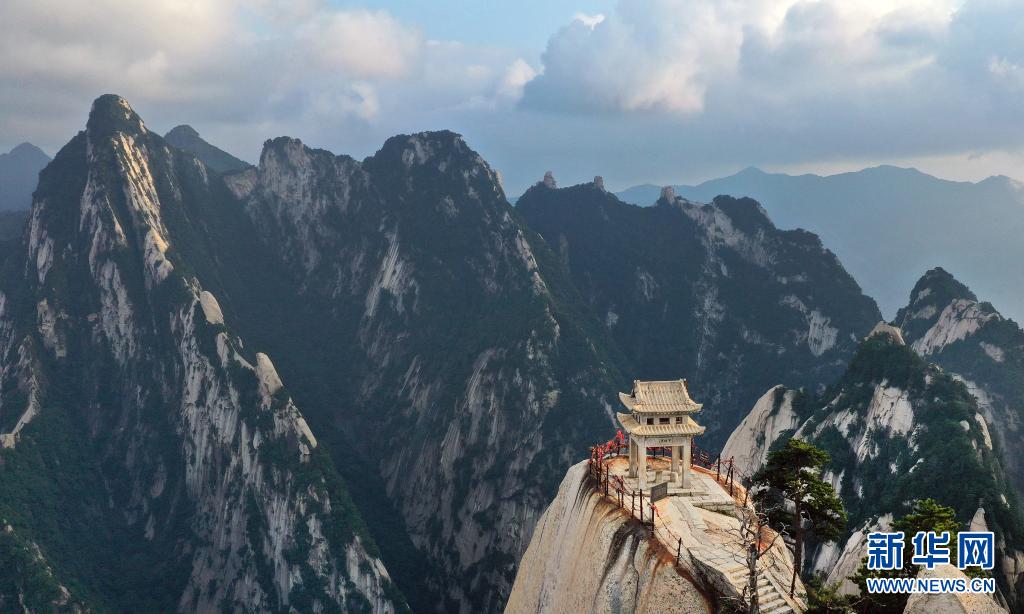 8月14日,西岳華山東峰下棋亭風(fēng)光(無人機(jī)照片)。