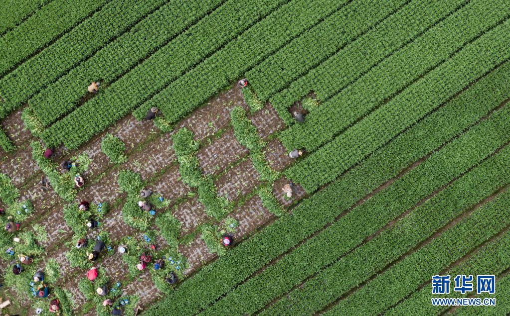 8月13日,在四川省阿壩藏族羌族自治州紅原縣刷經(jīng)寺鎮(zhèn)加當(dāng)村,當(dāng)?shù)厝罕娫谑崭罡咴n筍(無人機(jī)照片)。