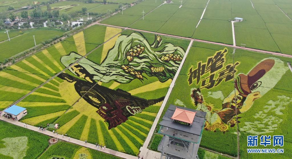 8月16日拍攝的稻田畫《神筆馬亮》,這里也是電影《我和我的家鄉(xiāng)》取景地(無人機(jī)照片)。