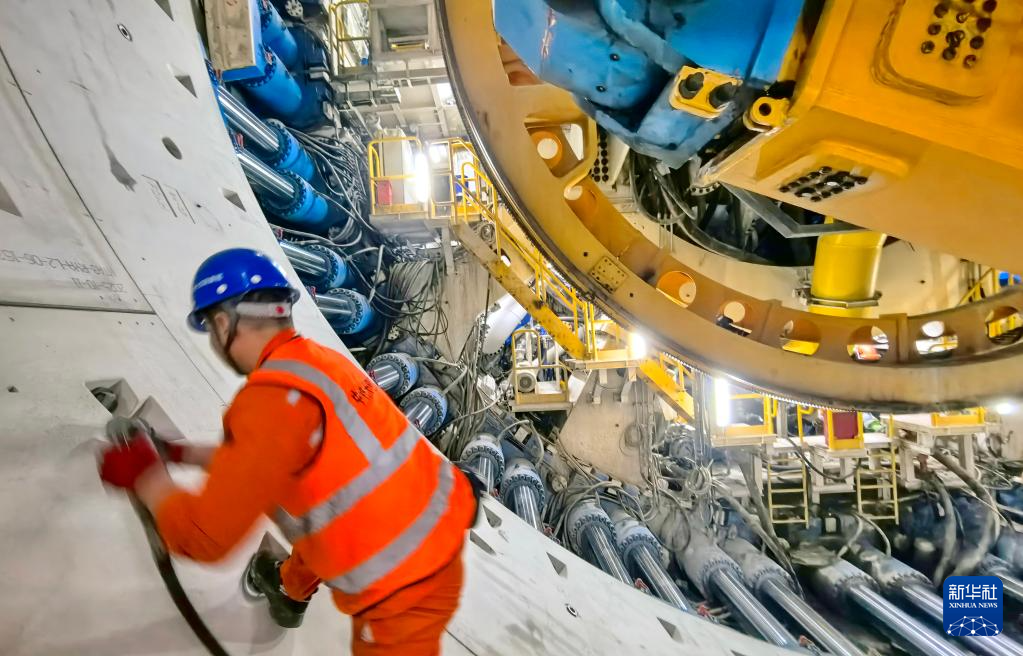 12月7日,施工人员在海太长江隧道工程施工现场拼装管片。