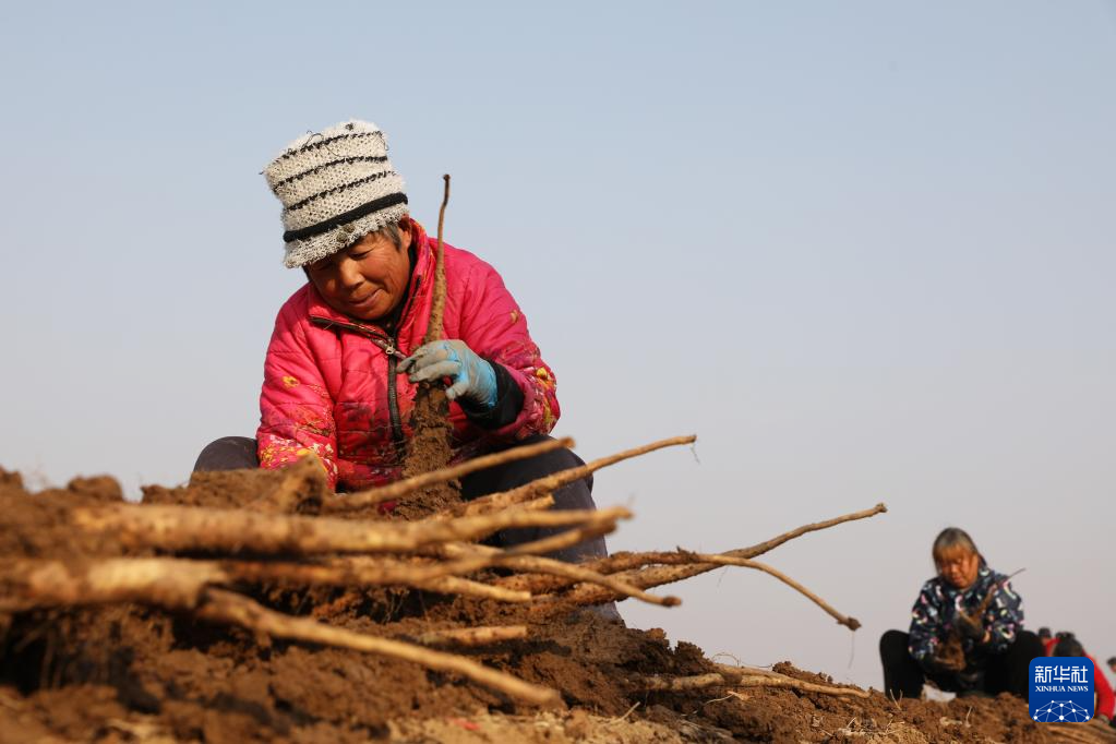 时下,河南省焦作市温县种植的3万亩铁棍山药迎来大面积收获期,当地农民抓紧采收、销售。近年来,温县利用独特地域优势,采取“合作社+企业+互联网+农户”模式,引导农民因地制宜发展铁棍山药种植产业,延长产业链条,把铁棍山药加工成茶饮、食品等高附加值产品,带动农户增收,助力乡村振兴。