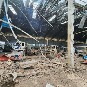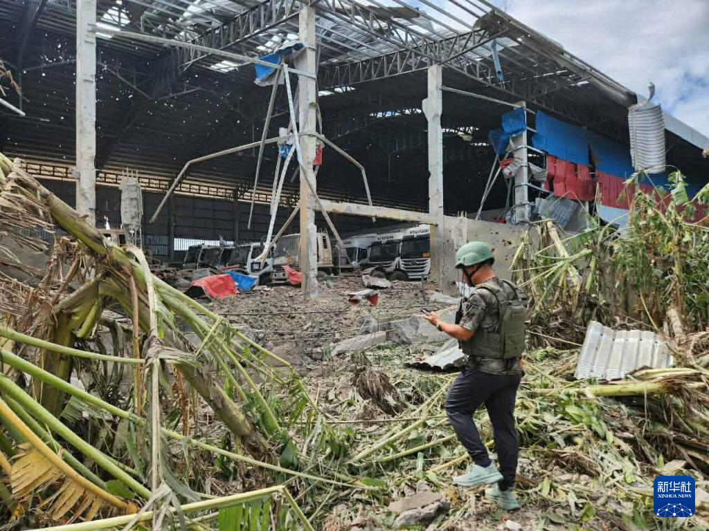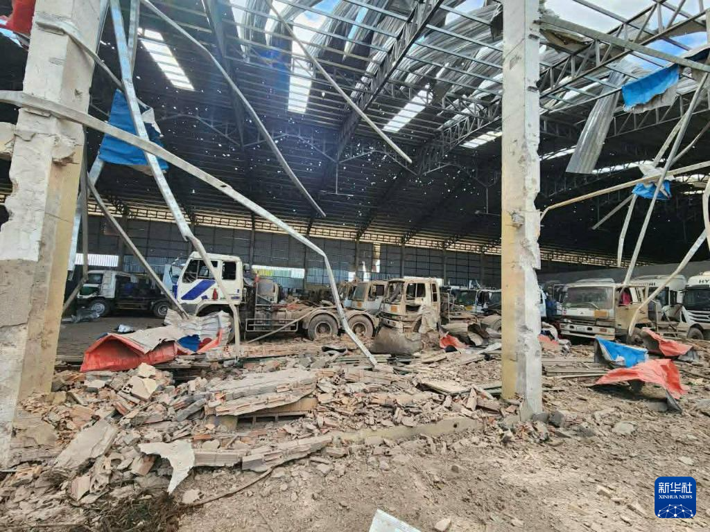 这是12月18日在柬埔寨班迭棉吉省拍摄的一处被泰国军队轰炸的民用设施。