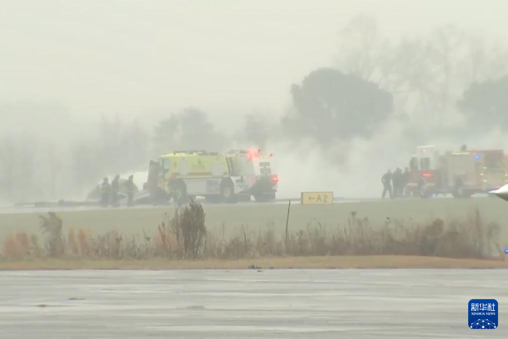 这张12月18日的视频截图显示的是消防人员在美国北卡罗来纳州斯泰茨维尔地区的机场附近工作。