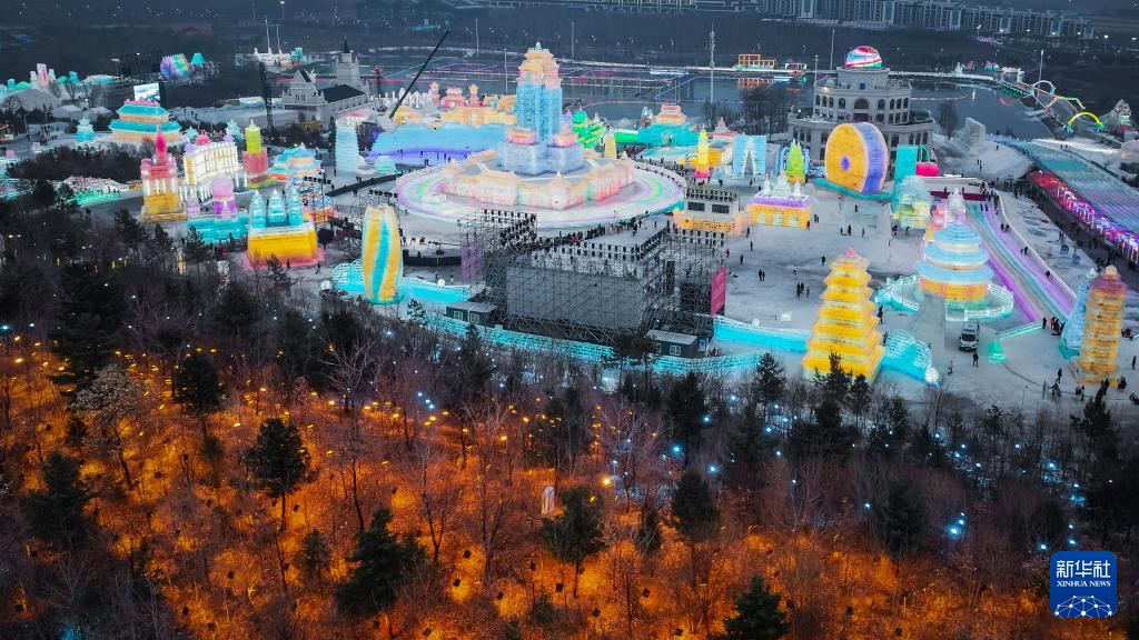 这是12月19日拍摄的长春市冰雪新天地景区(无人机照片)。