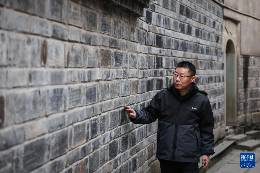 翟志刚在昭化古城内巡看(12月13日摄)。在昭化古城土生土长的翟志刚经营着一家餐馆,同时他还是昭化区蜀道三国文化研究会秘书长,业余时间投身于昭化古城文化遗产保护与研究工作。