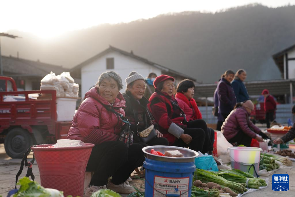 当地农户在昭化古城的早市上卖菜(12月13日摄)。