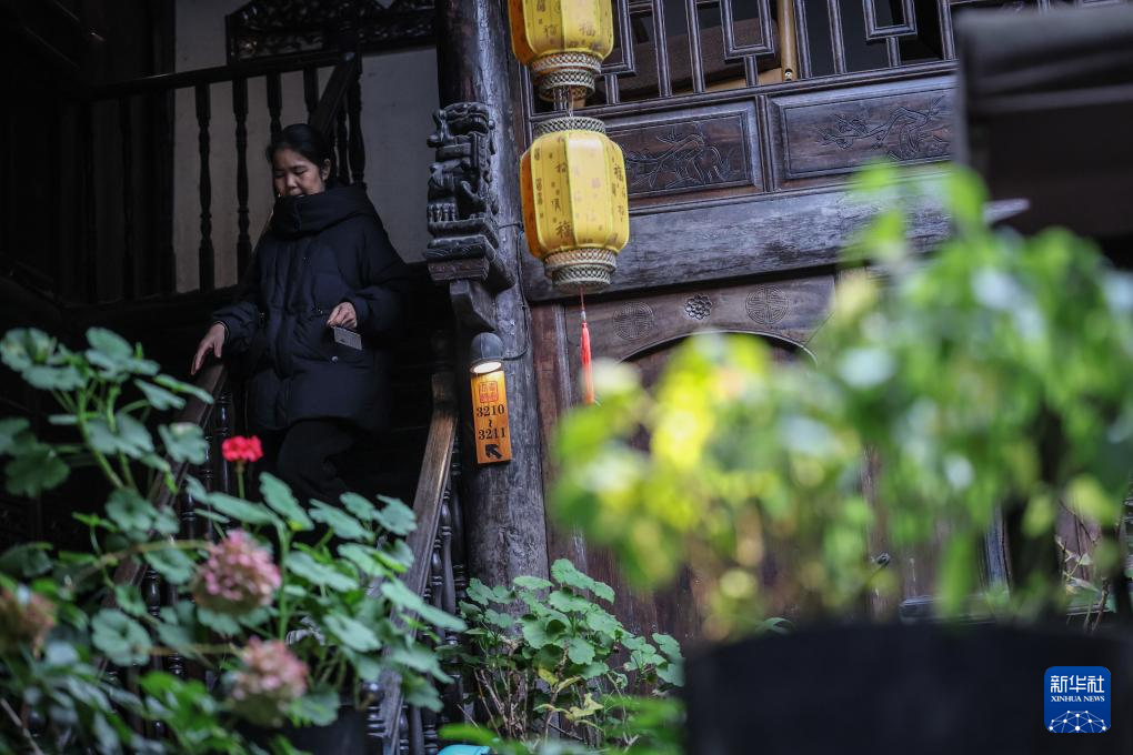 工作人员在昭化古城一家民宿内忙碌(12月13日摄)。