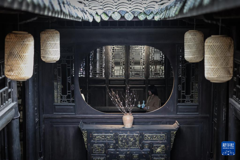 “95后”茶室主理人杨沫在昭化古城一家茶室内行走(12月13日摄)。