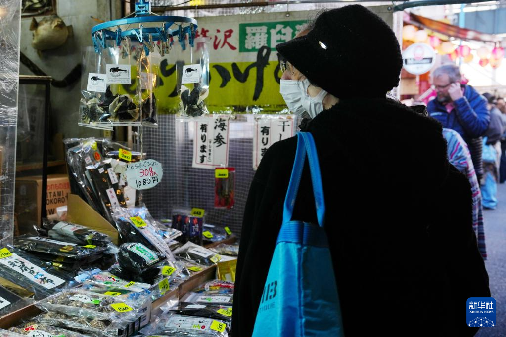 12月18日,在日本东京筑地站附近,顾客在一家店铺前选购。