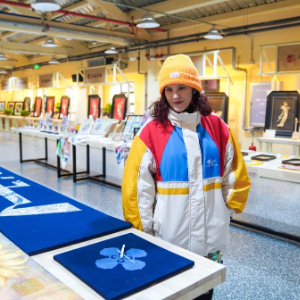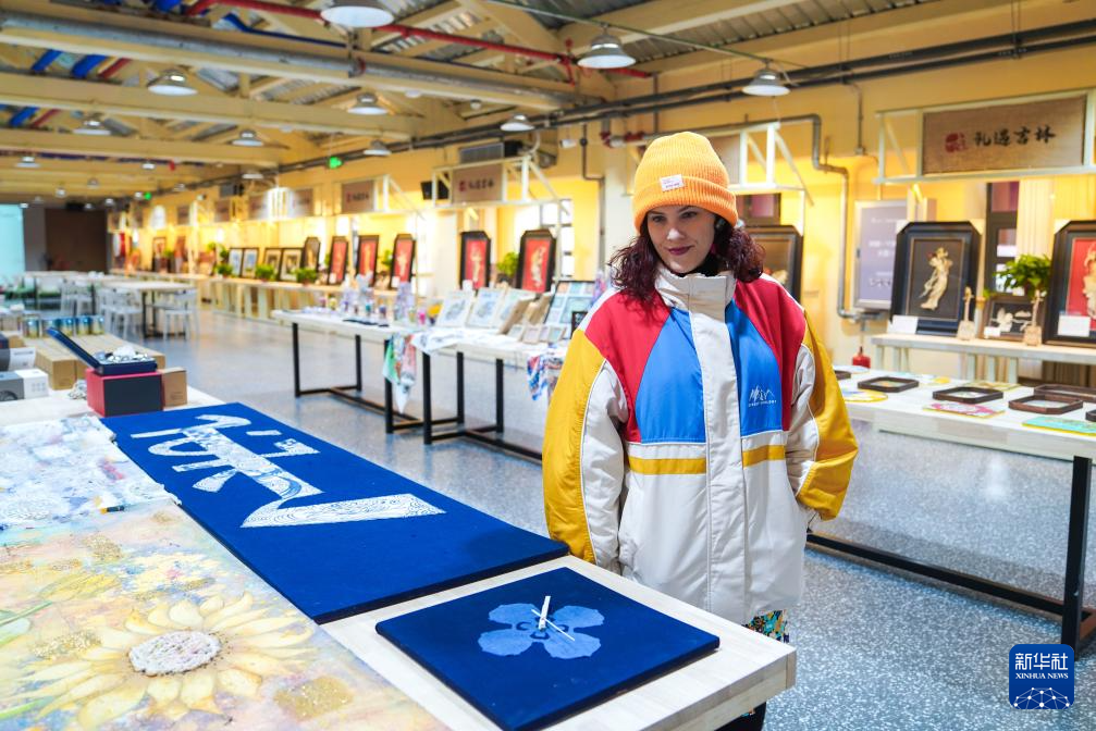 12月17日,外国媒体记者在长春市春京西历史文化街区参观传统手工艺制品。