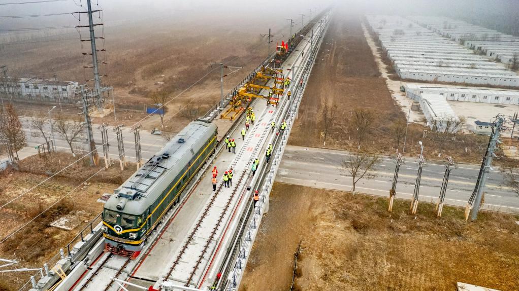 12月19日,在位于河北省邢台市清河县的京港高铁雄商段铺轨施工现场,工人将最后一对500米长钢轨平稳铺设就位,标志着京港高铁雄商段正线铺轨顺利完成,为线路按期开通运营奠定了坚实基础。