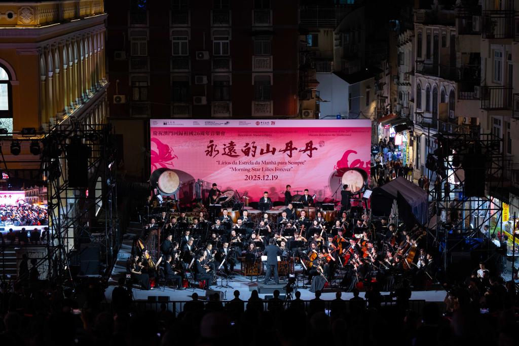 12月19日,由澳门特区政府文化局主办的庆祝澳门回归祖国26周年音乐会《永远的山丹丹》在大三巴牌坊前地举行。