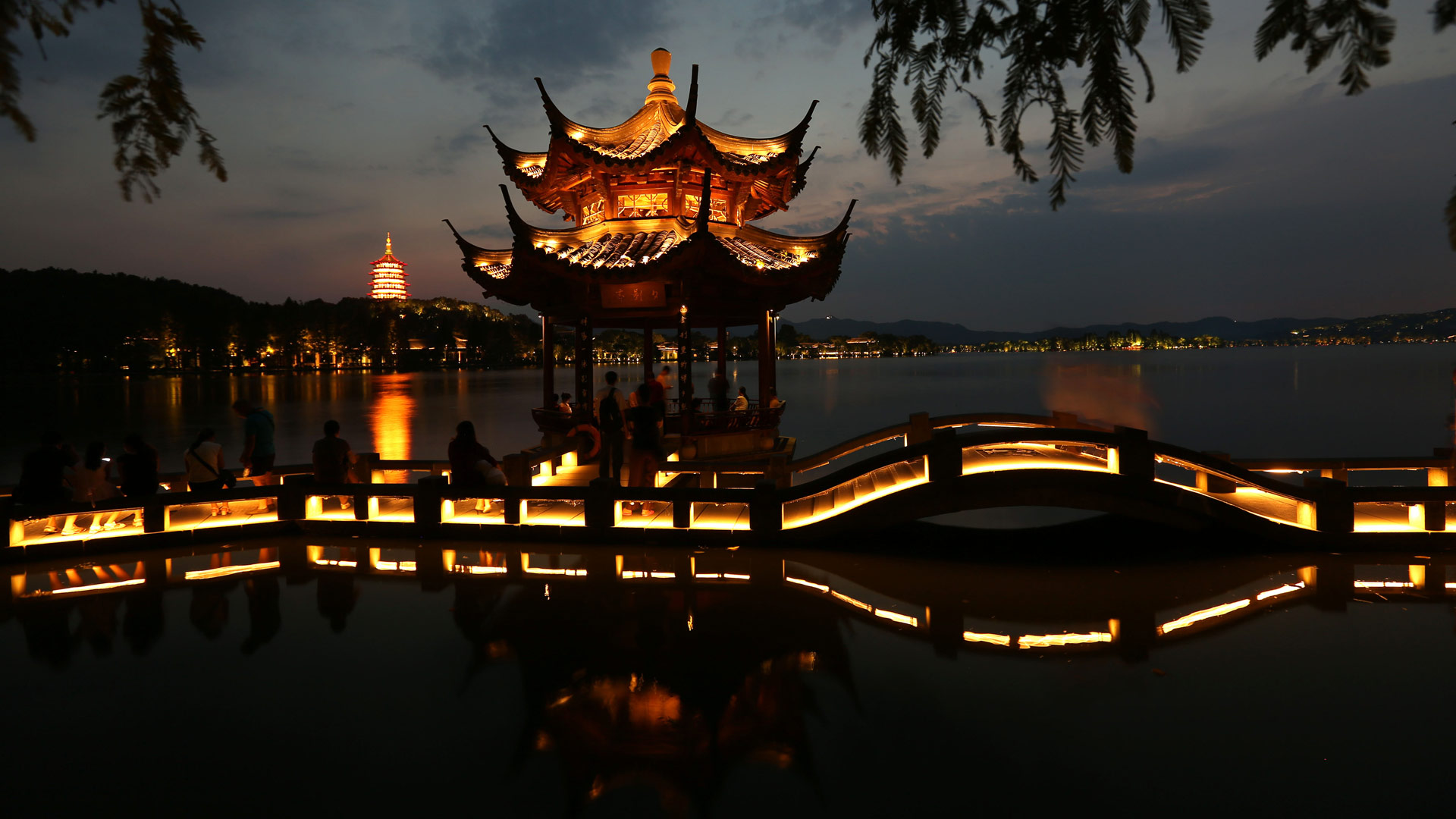 杭州西湖夜景(8月31日攝)。臨近G20杭州峰會,杭州夜色柔美,燈光璀璨。9月4日至5日,二十國集團(tuán)(G20)領(lǐng)導(dǎo)人第十一次峰會將在浙江杭州舉行。 新華社記者殷剛攝