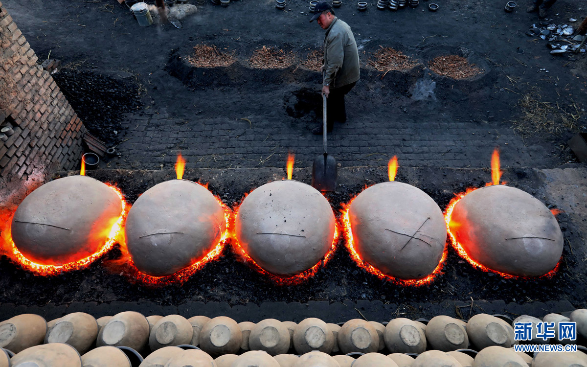 1月13日,在河北張家口蔚縣南留莊鎮(zhèn)白河?xùn)|村,王啟杰在青砂器燒制爐前工作。65歲的王啟杰是白河?xùn)|村一帶青砂器作坊“掌門(mén)人”、蔚州青砂器王氏家族的第四代傳承人,自幼跟父親學(xué)習(xí)青砂器制作,堅(jiān)持用傳統(tǒng)手藝燒制青砂器至今。河北省非物質(zhì)文化遺產(chǎn)項(xiàng)目——蔚縣青砂器是當(dāng)?shù)貍鹘y(tǒng)民間手工藝器皿,歷史悠久,俗稱(chēng)砂鍋、砂壺、砂吊等,是熬中草藥、燒水、做飯、煮肉、熱酒的上好器皿。河北張家口蔚縣南留莊鎮(zhèn)白河?xùn)|村一帶是蔚縣青砂器的發(fā)源地。當(dāng)?shù)厣缴嫌胸S富的天然瓷土,其土質(zhì)有黏性,細(xì)膩、柔軟、可塑性強(qiáng),俗稱(chēng)“矸子土”,是制作青砂器的天然資源。從碾碎“矸子土”到拉坯,再到燒制出成品,一件蔚縣青砂器的制作,需要大量繁瑣的工序。在燒制過(guò)程中,查看燒制的火候又稱(chēng)“看火”,是個(gè)重要環(huán)節(jié)——“看火”是否準(zhǔn)確,直接決定青砂器燒制質(zhì)量的好壞,這個(gè)“絕活”一般是由燒制青砂器的傳承人一輩一輩傳下來(lái)的。新華社記者 楊世堯 攝